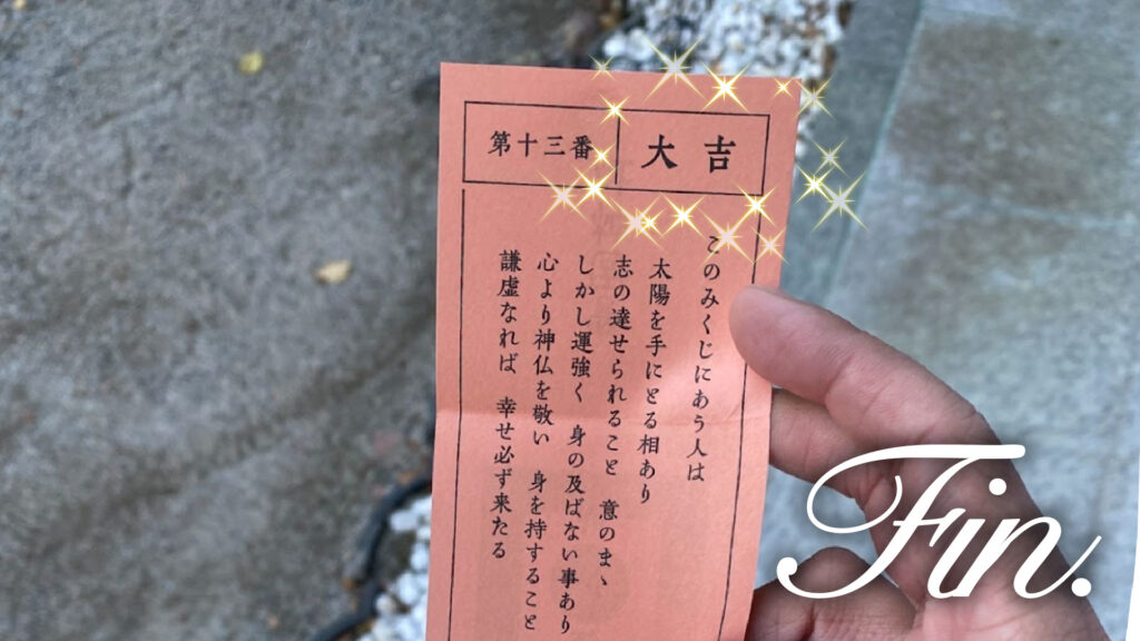 最後におみくじで願掛けを… アッーー!大吉だーッ!!!